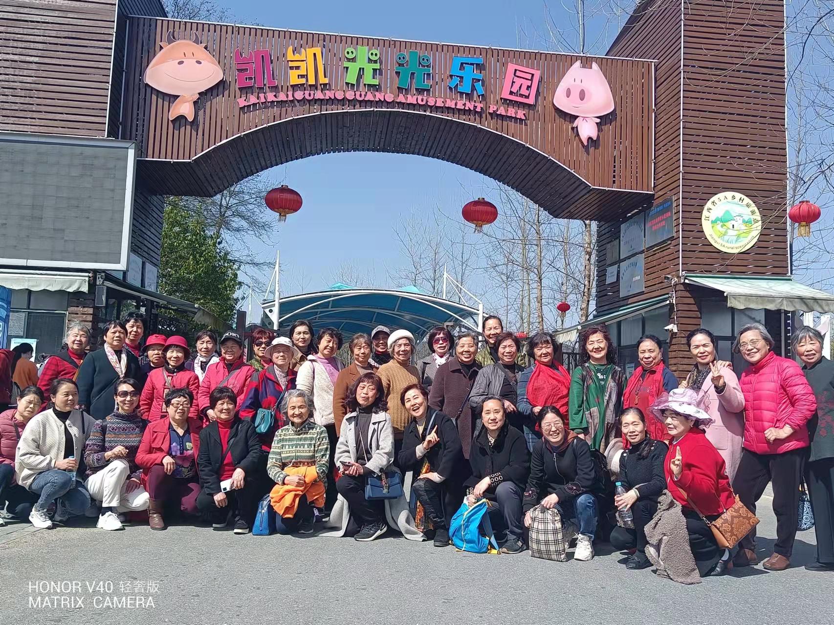 为丰富m88APP官网离退休女职工的文化精神生活,增进同事间的友谊,正值“三八”节来临之际,组织部组织离退休女职工前往凯凯光光乐园举行游园踏青活动。