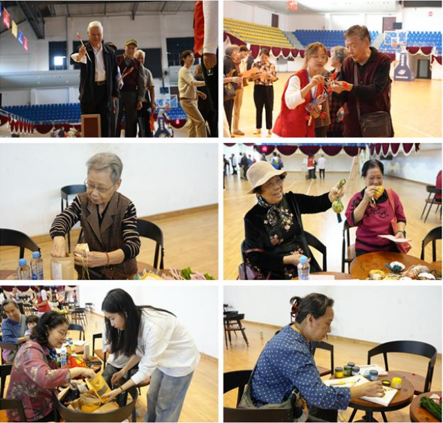 老同志们齐聚在学校室内体育馆参加“浓浓重阳情乐享游园会”活动,在游戏区大家兴致勃勃地参加了投壶、飞镖等趣味十足的活动;在体验区与手工制作社团成员一起制作香囊,大家分工有序,共同合作,暖意融融。在拍照打卡点,随着相机“咔嚓”声响起,大家神采奕奕,每一个幸福的瞬间都被定格成永恒。现场欢声洋溢,祥和温馨。